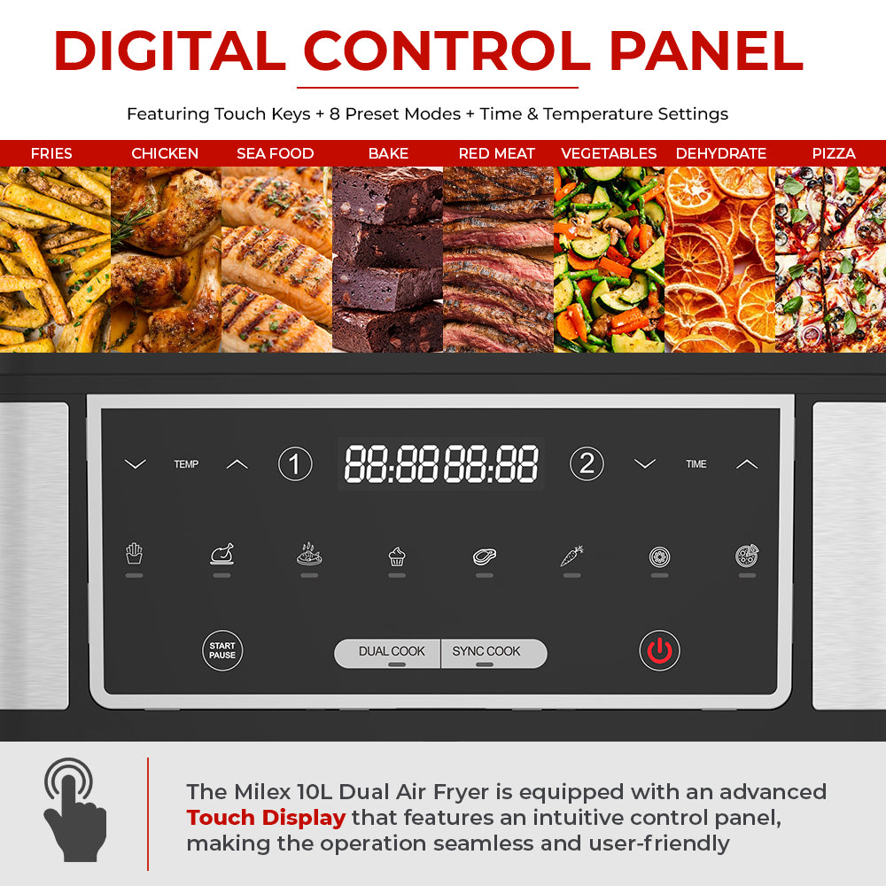 Indulge in the luxury of seamless cooking with the Milex 10L Dual Air Fryerβwhere style meets function. π΄